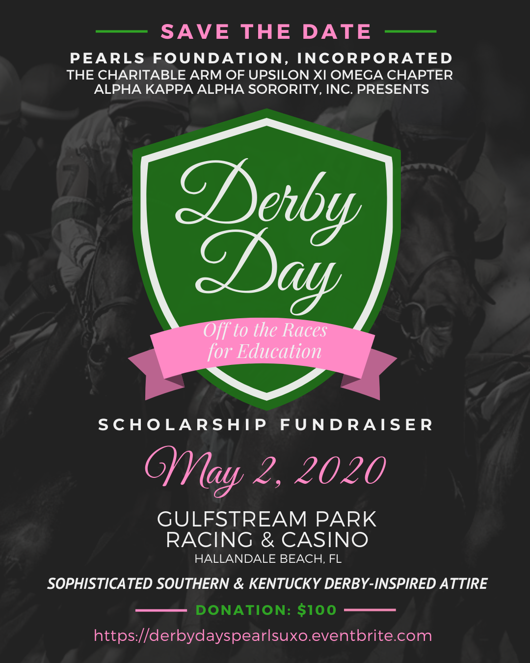 Join the PEARLS Foundation, Inc. and the ladies of the Upsilon Xi Omega Chapter of Alpha Kappa Alpha Sorority, Inc. as we TAKEOVER Gulfstream Park for a day of Southern sophistication as we are " Off to the Races for Education"! Ladies & Gentlemen...Welcome to DERBY DAY!
